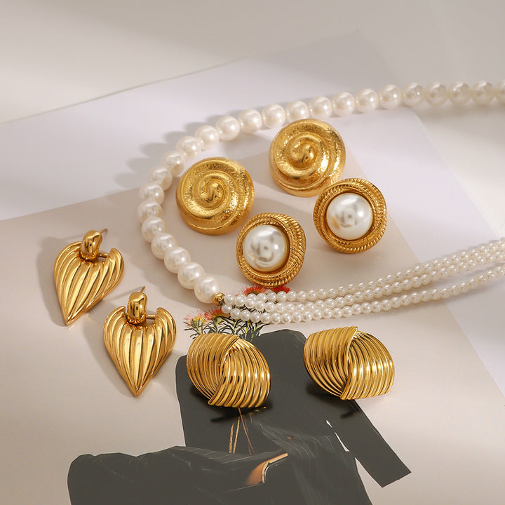 Stainless Steel Pearl Necklace High-End Exaggerated Flower Stud Earrings