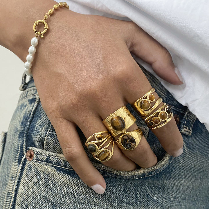 Stainless Steel Tiger's Eye Ring Natural Stone Ring Hand Jewelry
